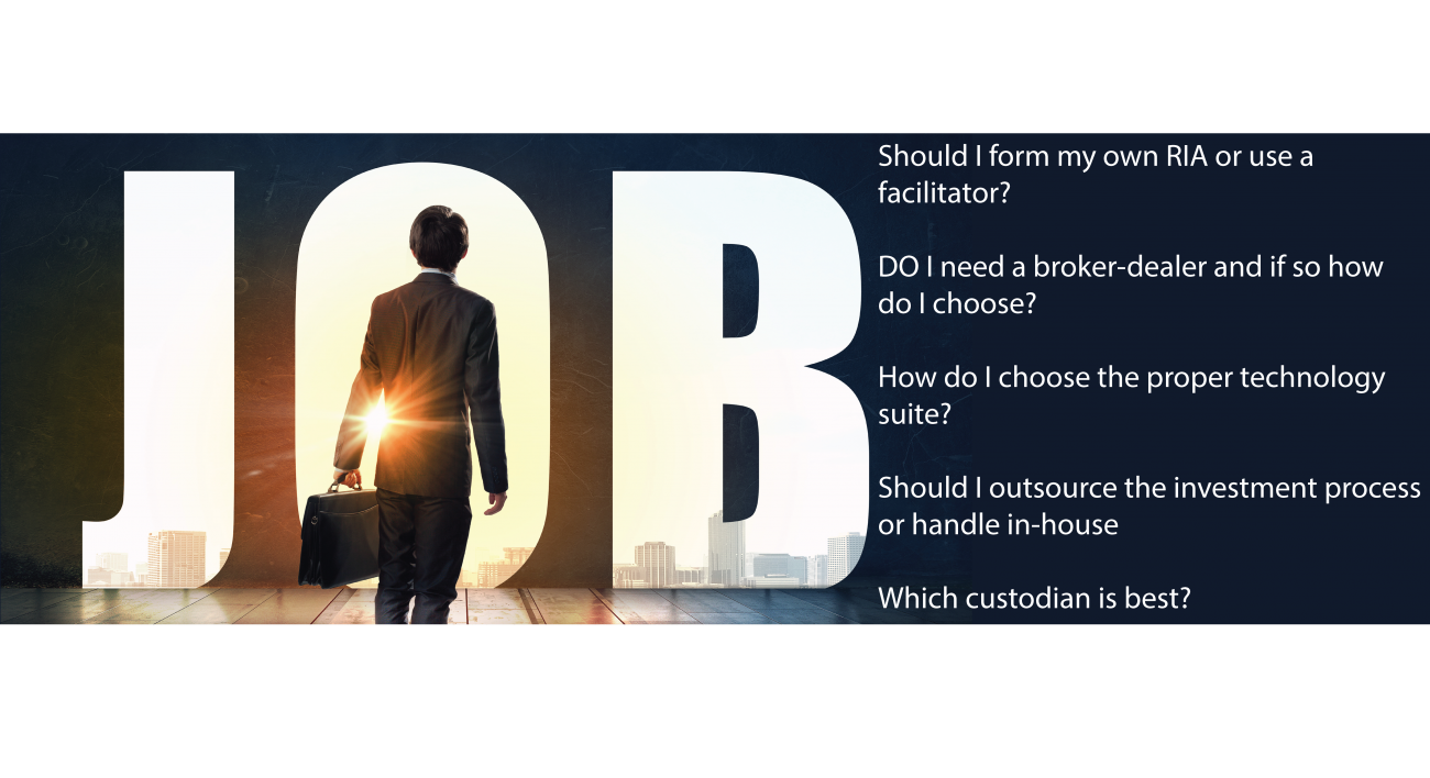 We live in a very noisy world! The amount of information that is available to us on a daily basis is absolutely astonishing. When reading the plethora of information regarding advisor independence it is easy to come to the conclusion that consolidation is inevitable and that if you're not part of a large organization you won't be able to compete. This could not be further from the truth! With shared office spaces, cloud-based software systems and a paperless infrastructure, it has never been easier and more efficient to break away and start your own firm. We can show you the way. In recent years, we have seen a mass exodus of advisors from large organizations to start their own firms. A large percentage of these advisors used a break-away service or affiliation model to make their lives easier during this huge undertaking. We discovered major problems with the current break-away options and started a project to innovate this space! In the end, we built a revolutionary break-away platform that we call The Independent AdvisorTM . This game-changing platform gives advisors exactly what they want, with complete flexibility, at a fair price, and with world-class customer service!